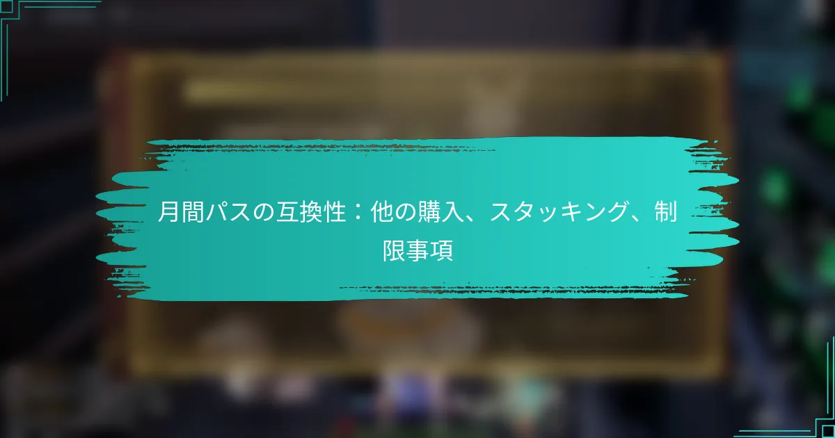 月額パスは、ユーザーが固定の月額料金でさまざまな製品やサービスにアクセスできるサブスクリプションサービスです。他の購入との互換性を理解することは、価値を最大化し、適格性を確保するために不可欠です。